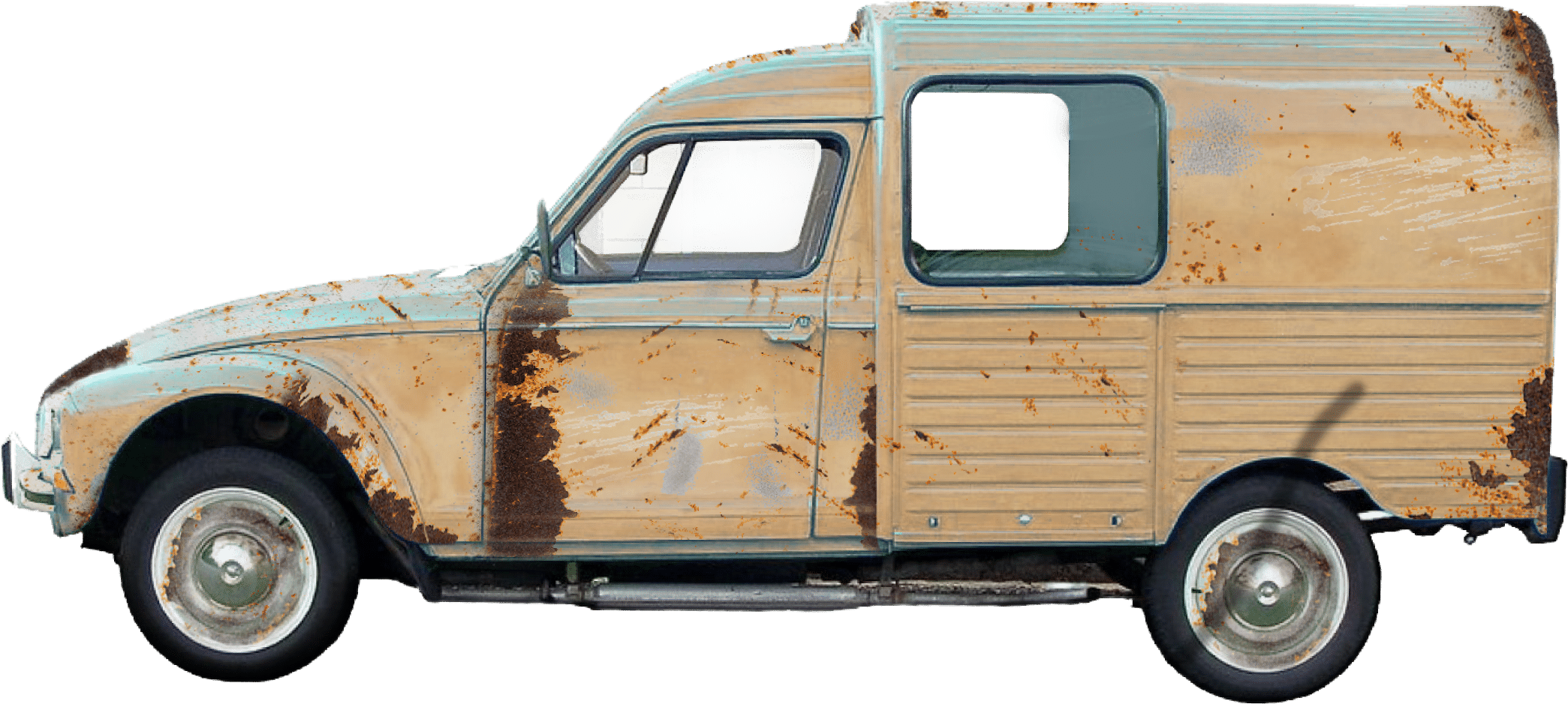 Là , c’est notre Job : on transforme , on modifie , on désosse et on découpe , on soude , on dépollue , on sécurise, on débosse et on fait repeindre . Pendant ce temps , on fait réaliser toute la partie habillage et équipements .